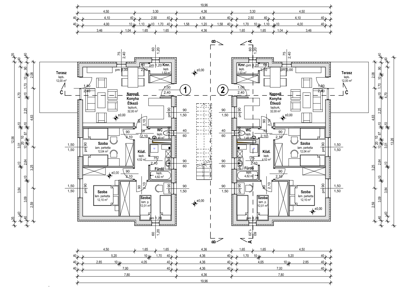 A földszinten 2 lakás kerül kialakításra, melyek terasszal